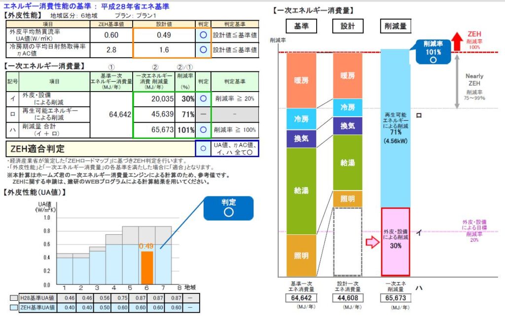 UA値は0.49。2025年4月より義務化された省エネ等級「4」の1ランク上の等級「5」です。1ランク上と言っても、熱損失は等級「4」(UA値0.87)の半分近くに抑えています。